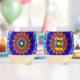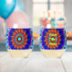 Ein spiralisierendes mehrfarbiges Fraktal, orange-rosa und blau auf dunklerem Hintergrund. Passen Sie Ihren eigenen Text auf der Rückseite an.