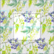 Hübsche Aquarellfarben immergrün, schlank gestempelte Solanumrebe in lila und grüner feiner Kunst wiederholen gemusterte Stoffe. Solanum ist auch bekannt als der brasilianische Nachtschatten, St. Vincent Lilac, Glycin und der italienische Jasmin. Original Aquarellkunst und Design von Sarah Trett.