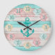 Strand Aquamarin und Korallen Seashells & Anchor Große Wanduhr