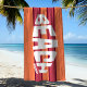 STRAND BITTE! Dieses coole, einzigartige Design zeichnet sich durch moderne Typografie aus, die der Form eines Surfbrettes auf einem gestreiften Hintergrund ähnelt. Verwenden Sie das Entwurfstool, um die Streifen-Farben zu ändern.