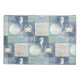 Die Vintagen themed Bilder des Strandes und des Meeres, die im Weiß und in der Sahnebeige übertragen werden, werden auf einem alten Hintergrund des hölzernen Brettes mit Quadrate abgetöntem Aqua vereinbart, ein tiefes und ein hellblau und weich Weiß. Bilder in der Creme und das dargestellte Weiß ist eine Krabbe, schwache Muscheln, Sanddollar, Seepferd und zwei hochfliegende Seemöven zusammen mit den Wörtern "der Strand ist- mein glücklicher Platz". Zusammenpassende Einzelteile und andere themenorientierte Entwürfe des Strandes und des Meeres sind in meinem Zazzle Speicher verfügbar.