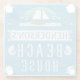 Dieser hübsche, beachy Glasgetränk-Untersetzer fügt eine einzigartige kundenspezifische Touch Ihrem Küstendekor hinzu. Der ein-von-ein-nette Entwurf wird gemacht, um blauem hölzernem Korn mit weißem Text und elegantem Schnörkel in den Schatten des braunen und goldenen Gelbs zu ähneln. An der Spitze umfaßt der Entwurf ein Segelboot auf den Wellen, die Seemöwen, die vorüber fliegen. Nautilus-Muscheln umgeben den "Strand-Haus" Text, der gemacht wird, um etwas getragen zu schauen.