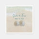 Hochzeitsnapkins mit Namen des Paares und Hochzeitsdatum. Zwei Sand-Dollar repräsentieren das Paar und alles, was über einer subtilen Strand-Szene mit hellblauem Wasser und Sand gedruckt wird. Napkins kommen zum Abendessen, Mittag- oder Cocktails in vielen Stilen. Duschen, Probe oder Empfang.