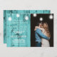 Rustikales personalisiertes Foto der Strandholz- und -maurerglaslaternen-Fotohochzeits-Einladungen der verlobten Paare auf der rechten Seite. Auf dem links ist altes, beunruhigtes Holz befleckter Aquatürkis. Über der gesamten Spitze, einschließlich das Foto, bedeckt das glühende Imitat, die romantischen Schnurlichter und die Maurergläser. Personalisiert mit den Namen des Paares mit koordinierenaquaschatteneffekt. Eine elegante Rollegrenze trennt die Einleitung und die Namen von den Hochzeitsdetails. Rückseite hat koordinierenden hölzernen Hintergrund des aquamarinen blauen Strandes und Laternenlichter im Freien. Verwenden Sie besonders anfertigen es Knopf, um alles zu ändern - Schriftartarten, -größen, -farben oder -platzierung. Rustikale Strandhochzeit lädt für tropische Hochzeitsarten, Sommerhochzeiten, Strandhochzeiten, rustikale Hochzeiten im Freien, Nachthochzeiten, Scheunenhochzeiten, lässige Hochzeiten oder Küstenhochzeiten ein. Wir haben koordinierenden rustikalen Strand-Polterabend einladen und Strandthemahochzeitsdekor in unserem Zazzle.com/angela65*-Geschäft.
