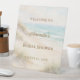 Begrüßen Sie Ihre Gäste mit diesem romantischen Küsten Brautparty-Schild. Es zeigt eine weiche Wasserfarben-Strandlandschaft mit sandigen Dünen, Strandhafer und rollenden türkisfarbenen Meereswellen. Platzieren Sie dieses Podest-Schild am Eingang oder Gästebuch-Tisch, um Ihre seeseitige tropische Feier zu bereichern.