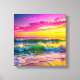 Strand mit Gelb und Rosa Ozeanwellen Lebhaft Leinwanddruck