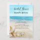 Eine wunderschöne surreale Strandlandschaft mit Muscheln im Sand und den Ozeanwellen, die in Brautdusche eindringen. Personalisieren Sie Ihre Party-Informationen. Besuchen Sie unseren Laden für weitere Einladungen in der Szene des Strandes.