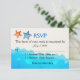 Strand mit Starfish Hochzeit RSVP. Großartiger Hochzeitsscanner für Strand oder Hochzeiten in Urlaubsort. Ein Sandstrand, sanfte Wellen und zwei Seesterne symbolisieren für Ihre personalisierte Einladung die Braut und den Bräutigam. Matching Einladungen, Dankeschön's, und zusätzliche Hochzeitsprodukte verfügbar.