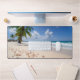 Fügen Sie Ihrem Schreibtisch Farbe mit dieser farbenfrohen Strandmatte hinzu! Diese Schreibtischmatte ist 31,5" L x 15,5" H. Es verfügt über einen Meeresstrand mit Muscheln und Palmen. Ideal für Naturliebhaber.