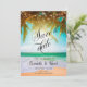 Strand mit Palmen, Sonne, Lichtern und Skripten. Beautibel Save the Date, dass mit Ihrem Namen angepasst werden kann.Wählen Sie den "Anpassen"-Button, um den Schriftart Stil, Farbe und Größe zu ändern.