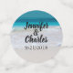 Fun Strand Thema Party Tischfetti, mit Grafiken von Sand Dollar, Beachbälle und hübschen Sandstrand mit schwarzem Text. Personalisieren Sie den Text für Ihre Hochzeit, Feier oder besondere Anlass.