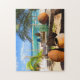 Ein Puzzlespiel, das ich von einem Bild ich Riviera-Maya einließ, Mexiko machte. Entspannen Sie sich mit dem weißen Sandstrand, dem sonnigen Himmel und dem blauen Meer.