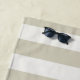 Strand Sand und White Stripes Beach Handtuch. Das wunderschöne, neutrale Strandtuch wird durch die Farbtöne sandgraue und weiche Weiß ergänzt. Ideal für Beach House, Lake House oder eine neutrale Wohngestaltung.