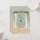 Das Design zeichnet sich durch einen farbigen Strand und ein grüneres Element in Grün- und Weißtönen aus, das eine hellgrüne sandfarbene Textur aus Kraftpapier mit weißem Himmelbett und Kalligraphie-Schrift oder Schrift überdeckt. Ideal für Ihre Hochzeitsfeiern!