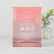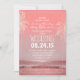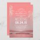 Palmen, Strand bewegt Seehochzeits-Einladung wellenartig. Hübsches elegantes und einfach mit handgeschriebener Schriftart und rosa alter Papierhintergrund