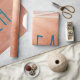 Sandstrand Uferlinie blaue Ozeanwellen Handwerk Entcoupage Packung Papier Rolle. Wassersport am Ufer. Schöne, tropisch inspirierte Sommerferien Szene Geschenk-Wrap. Chic, trendig, hübsch, modern, elegant, cool, Reisedesign. Text kann angepasst werden. Bildrecht Marg Seregelyi Fotografie.