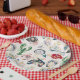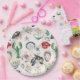 Ein wunderschön detaillierter Papier-Teller mit einem lebendigen Wasserfarben-Muster aus handgemalten Muscheln, Blumen und nautischen Elementen. Als Teil der Seaside Soirée-Kollektion entworfen, bringt dieses Stück ein raffiniertes Küsten-Feeling auf Ihren Tisch, während es Farbe, Bewegung und visuelles Interesse hinzufügt.