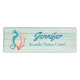 Angestellt-Namenumbau des Küstestrandes wusch der themed, der im Aquagrün getan wurde, hölzerne Schiefer, mit Grafiken eines bunten Seepferds und der Koralle, auf der links Seite heraus schauen. Personifizieren Sie den blauen Text des Aqua zum Anzug Ihr Geschäftsbedarf.