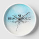 Die Wanduhr bietet Wasserfarbenen Strand Wasser Sand und Wort "Strand" mit dekorativem Akzent und Flip Flops.