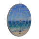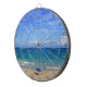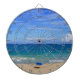 Ein Blick aufs Meer mit einem blauen Sonnenschirm.