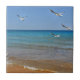 Vibrierende Fotografie der Seemöwen, die niedrig über die Küstenlinie eines goldenen sandigen Strandes auf Wohngestaltung und Einrichtungsgegenständen fliegen.