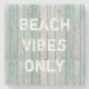 Blaues, getöntes Holzmuster, das so aussieht, als ob es aus einer verwitterten Hütte am Strand gerettet worden wäre, die mit dem Text "nur für Strandvibes" in einem gereizten, weißen Schriftart versehen ist.