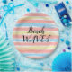 Beach Waves ist in lustiger schwarzer Schrift geschrieben. Die Pastellfarben sind sonnenbedruckt, in Korallenrosa, Himmelblau, gelb, in Weiß gehalten. Original Artwork Design © TamiraZDesign