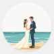 Enthält 20 kleine Aufkleber auf einem Blatt. Eine hübsche Abbildung einer Braut und eines Bräutigams, die am Strand stehend sind und sich perfekt für die Dekoration mit Hochzeitsgeschenken eignen.