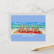 Diese Art Postkarte hat einen leeren Rücken für unzählige Verwendungen oder Gelegenheiten. Die Vorderseite zeigt mein urheberrechtlich geschütztes Panorama-Aquarellwerk niedlicher brauner Hasen auf einer roten Stranddecke, das die Meereswellen beobachtet, mit dem Titel "Beach Bunnies". Whimsical, einzigartiges Kunstwerk & Design von Tuzi Williams.