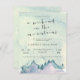 Eine moderne Einladung für ein Bachelorette, Brautparty, Rückzugswochenende in den Bergen. Dieses Design besticht durch eine wunderschöne Gebirgslandschaft in Blau, Grün und lila, mit Tannen und einem blauen Aquarellspüler. "Ein Wochenende in den Bergen" ist in dunkelgrauem, modernem Kalligraphie-Schriftart. Details können auf der Rückseite hinzugefügt werden.