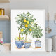 Poster, Wandkunst mit Aquarellbildern von Zitronenbäumen mit pulsierenden Zitronen und einem Olivenbaum mit üppigen Ästen Set in chinoiserie Stil Pflanzern. Zusätzliche Größen und Framingoptionen sind verfügbar.