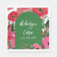 Wasserfarbe inspiriert Anemondesign um grünen Bogen mit Namen und Hochzeitstermin in Weiß.