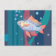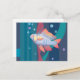 Postkarte mit Unterwasser-Tierkunst, Barschfisch mit roten Flossen und Schwanz-Schwimmen in Algen. © Julia Khoroshikh www.juliakhoroshikh.art #underwaterart #fish #zazzlemade #nauticaldecor #postcards #greetingcard #postcross