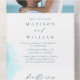 Feiern Sie Ihre Liebe mit unserer Beach Watercolor Wedding All-in-One Einladung, perfekt für Ihre sonnengeküsste Strandangelegenheit. Es ist eine reizvolle Mischung aus Eleganz und Charme am Meer. Stilvolle Schrift und eine lebendige Mischung aus türkisfarbenen, aquamarinen und pfirsichfarbenen Tönen, die den Ton des Ozeans und des Sonnenuntergangs in sich widerspiegeln. Ihre Gäste werden von ihrer künstlerischen Schönheit und ihrem Küstenstreifen verführt, was sie zu einem unvergesslichen Teil Ihres unvergesslichen Meeres-Festes macht.