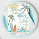 Sorgen Sie mit dieser lebendigen Geburtstagseinladung für eine Strandparty für Kinder, die Sonne, Surfen und Spaß lieben, für Aufsehen! Mit Palmen, Surfboards, Meereswellen und einer strahlenden Sonne schafft dieses Design die Atmosphäre für eine tropische Feier. Ideal für Geburtstage im Sommer oder Poolpartys, ist es anpassbar mit Ihren Veranstaltungsdetails und sorgt dafür, dass die Gäste vom Moment des Erhalts an den Spaß spüren. Eine fröhliche Wahl, um den besonderen Tag Ihres Kindes hervorzuheben und gleichzeitig die Sichtbarkeit durch Schlüsselwörter für Strandpartys zu erhöhen.