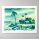 Ursprüngliche Wasserfarbe von Norbert Scanlan von Hütten an einem tropischen Strand.