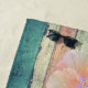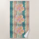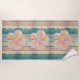 Das gewitterte Holz erinnert an eine Strandpromenade in Sandfarben, aquamarin und Korallen. Ideal für eine Hütte am Meer oder ein Strandhaus. Verziert mit einer korallenrosa Hibiskus-Blume.