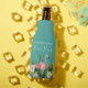 Wasserfarbe tropische Flora mit rosa Flamingo Familienname Beach House Flasche Cooler