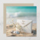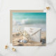 Ein Elfenbeinumschlag ist mit einem Hauch von Babyatmen und Erholungen auf sandigem Strandgelände geschmückt, begleitet von einem Sand-Dollar und einem Seestern. Alle Texte können geändert werden.