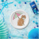 Strandkatze mit rosa und grünem Schirm Pappteller
