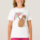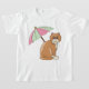 Strandkatze mit rosa und grünem Schirm T-Shirt