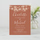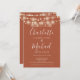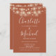 Mit hübschen Saitenlichtern und prächtigen Stilbezeichnungen kann diese elegante Terracotta Hochzeitseinladung mit all Ihren besonderen Informationen zum Hochzeitstag auf der Rückseite personalisiert werden, inklusive UAWG, Unterkunft und weiteren Details. Entwickelt von Thisisnotme©