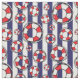 Nautische Stoffe mit Strandliegen über blau-weiße Streifen
