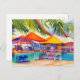 Farbenfrohe Marktstände unter Palmen am Strand sind Gegenstand dieser schönen digitalen Aquarellkunst-Postkarte.
