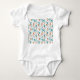 Dieser Babybodyanzug hat ein modernes Design von Crescents in Strandfarben von Tans und Blues. Woll das gleiche Design mit verschiedenen Farben? Nachricht.