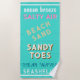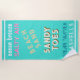 Hübsch türkisfarbener, grüner Hintergrund mit geometrisch weißen Streifen. Unterhaltsame Strandtypografie inklusive Strand-Sand, Meeresbrise, Muscheln in verschiedenen Schriftart in Weiß, Rosa, Bräune und Blau. Geometrische weiße Streifen an jedem Ende. Original Design von TamiraZDesign.