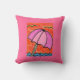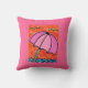 Dieses Strandschirm-Kissen stellt einen ruhigen faulen Tag am Ufer dar. Zwei Vögel, die in den grünen Farben hervorgehoben werden, schweben über einem rosa Strandschirm mit den hellen blauen Wellen, die im Abstand schimmern.