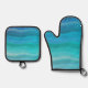 Strandschwimmbecken an der Küste auf Türkis Ofenhandschuh & Topflappen-Set