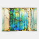 Ein Jugendstil-Fenster mit Buntglasfenstern aus Seestern unter dem Meer durch die Tiffany. In den Farben Blau, aquamarin, Gold und Braun. Ein elegantes Vintages Design.