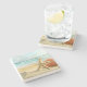 Dieser Kalkstein-Untersetzer wird mit einem sandiger Strand Starfishdruck gezeigt.